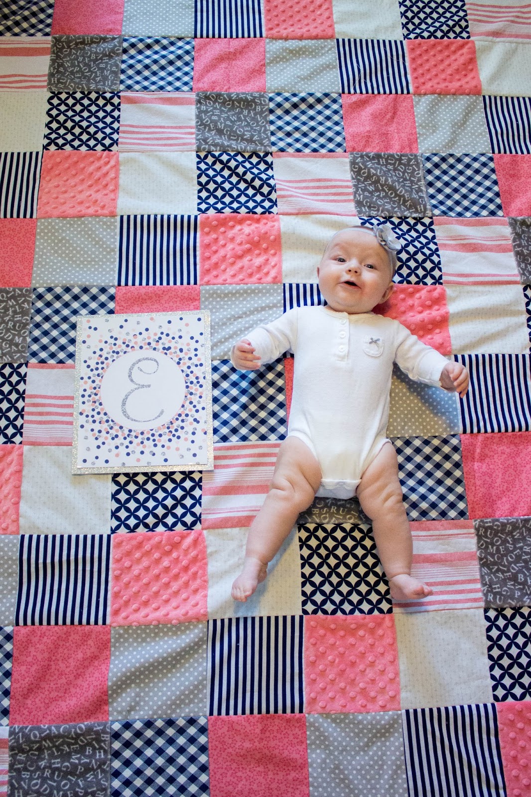 Evelyn is still in size 1 diapers. I put away her 0-3 month clothes and she's now wearing 3-6 months. She takes around 3 naps a day and had a little bit of a sleep regression, but thankfully it didn't last as long as Hayley's. Now we just need her to get used to eating food so that she won't be constipated, she has woken up during the night every once in a while from that. So we started giving her food on September 23. She does not like green beans but has seemed to enjoy carrots, sweet potatoes, peaches, bananas, and prunes. She finally rolled from her stomach to her back on September 9. I think she is close to rolling from her back to her stomach too, she lays on her side and just hasn't made it all the way over yet. Her big sister is more than willing to help her roll over either way. She is a little wiggle butt and moves all over the place when she's laying on the floor. She can stand up by herself for a few seconds if she's leaning against something. She has started laughing more and I will do and try anything to get those darling little giggles. She also gets really excited whenever I put her on her changing table and start talking or making noises at her. It's my favorite. She likes looking at pictures in books. She is getting pretty good at grabbing things with her little hands. I love to watch her face concentrate so hard, it's cute. Her hair is slowly getting lighter and I'm surprised it hasn't fallen out.